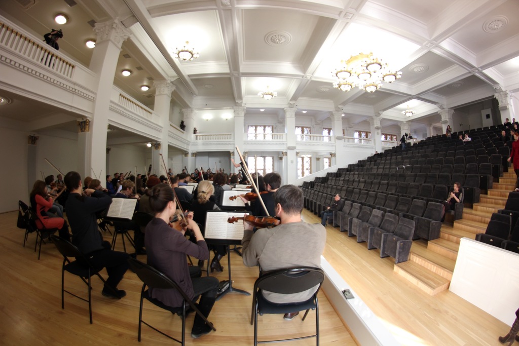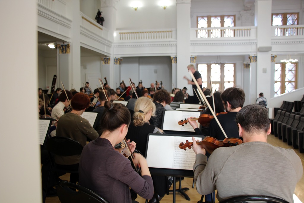«Сегодня у нас интересный концерт: встреча в настоящем прошлого и будущего, — добавил Юровский. — Прошлое в каком смысле: этот зал исторически принадлежал симфоническому оркестру Арнольда Каца. Я считаю символичным, что именно они выступают первыми. Более того, дирижер Гинтарас Ринкявичус, насколько я знаю, дебютировал в Новосибирске 30 лет назад именно в этом зале. Что касается будущего, то наш концертмейстер Эльдар Нагиев будет дирижировать юношеским оркестром музыкальной школы, и могу вас заверить: те, кого вы услышите, в будущем станут участниками как коллектива, который играет сегодня, так и нашего коллектива. Я уже слышал их в действии, это совершенно замечательное поколение музыкантов».