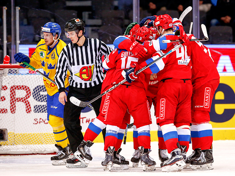 В Гетерборге сборная России по хоккею со счетом 4:2 одержала победу над командой Швеции в матче шведского этапа Евротура.
