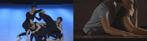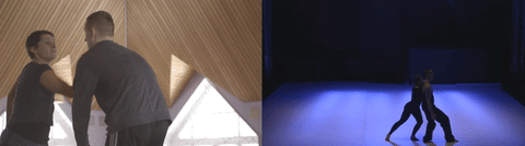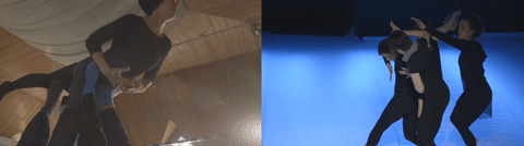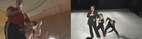 Слева: Яна и Лена во время репетиции. Справа: сцена из спектакля «Истории об очень симпатичных, или пространство доверия»Фото: Петр Воронцов для ТД Что такое культура? Это возможность что-то осмыслить. Вот ребята с помощью тела учатся понимать, что ты им говоришь. Когда они используют тело как инструмент, через который могут себя осмыслить, они становятся частью культуры.