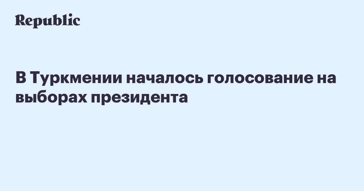 В Туркменистане 12 февраля проходят выборы президента страны. Как сообщает «Интерфакс», избирательные участки открылись в 8:00 по местному времени (5:00 мск).