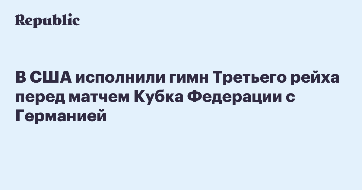 В США исполнили гимн Третьего рейха перед матчем Кубка Федерации с Германией