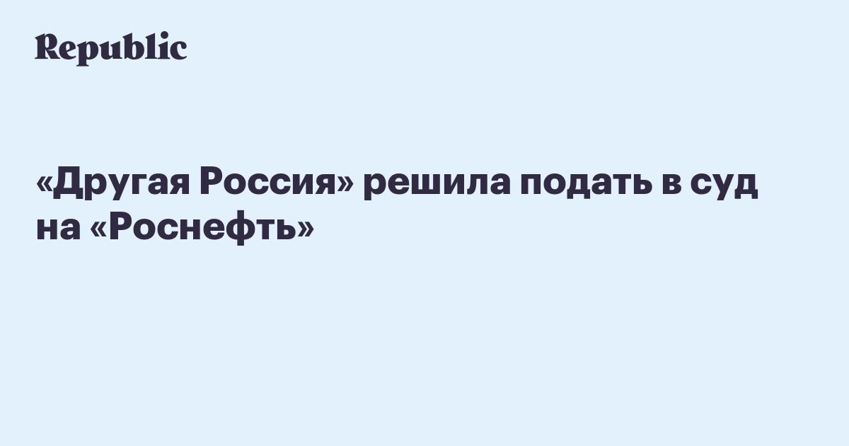 Партия «Другая Россия» подаст в суд иск о защите честии достоинства против «Роснефти». Об этом в своем ЖЖ написал один из руководителей партии Александр Аверин.