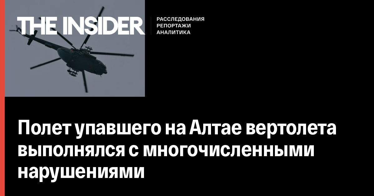 Полет упавшего на Алтае вертолета выполнялся с многочисленными нарушениями