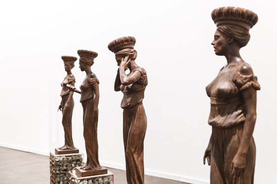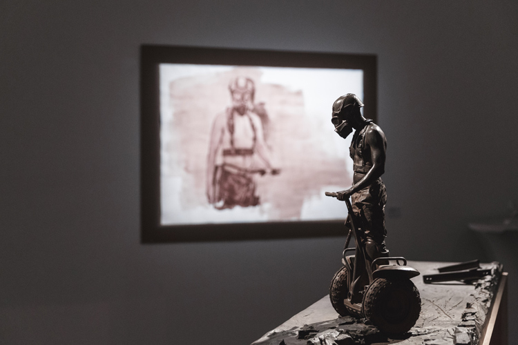 © MMOMA Право человека на ущербные взгляды прописано в Конституции РФ: коль скоро ты не призываешь к межнациональной розни и детоубийству, высказывайся на здоровье. И замечательно, что ущербному у нас дают дорогу наравне со всем остальным. А в искусстве ущербность так и вовсе как дома. Иначе пришлось бы жить без Селина или Курехина: их политические или, бери шире, этические воззрения не отличались, увы, оригинальностью. Но, когда Übermensch-риторика сопровождается эстетической дисфункцией, возникает вопрос: а может, прав был поэт всея Руси Иосиф Бродский, говоря, что зло вульгарно. И в этом смысле персональную выставку Алексея Морозова можно расценивать как дидактическую инициативу руководства MMOMA. Как выглядит плохое современное искусство? Как бронзовая девушка с ружьем.