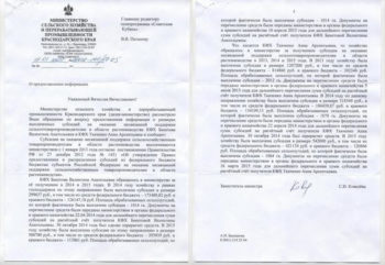 «КФХ Бекетова Валентина Анатольевна обратилось в министерство… в 2014 и 2015 годах. В 2014 году хозяйству в рамках господдержки по этому направлению была выплачена субсидия в размере 299637 руб., в том числе из средств федерального бюджета 173489,82 руб. и краевого бюджета – 126147,18 руб. Площадь обрабатываемых сельхозугодий, по которой фактически была выплачена субсидия – 1014 Га… В 2015 году хозяйству была выплачена субсидия по этому направлению в размере 506700 руб.» — гласит официальный ответ краевого ведомства.
