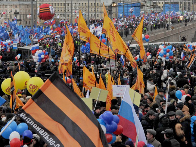Флаги партий на митинге-концерте "Мы вместе". Фото: Андрей Любимов / АГН "Москва" Бывший депутат Госдумы от КПРФ Денис Вороненков назвал грубой ошибкой присоединение Крыма, заявил о тотальной фальсификации результатов выборов в РФ и сравнил Россию с нацистской Германией. «Крым стал такой лакмусовой бумажкой — он объединил Россию вокруг идеи что-то ******** (украсть) у своего соседа», - сказал экс-депутат. Вороненков заявил, что не голосовал за присоединение полуострова.