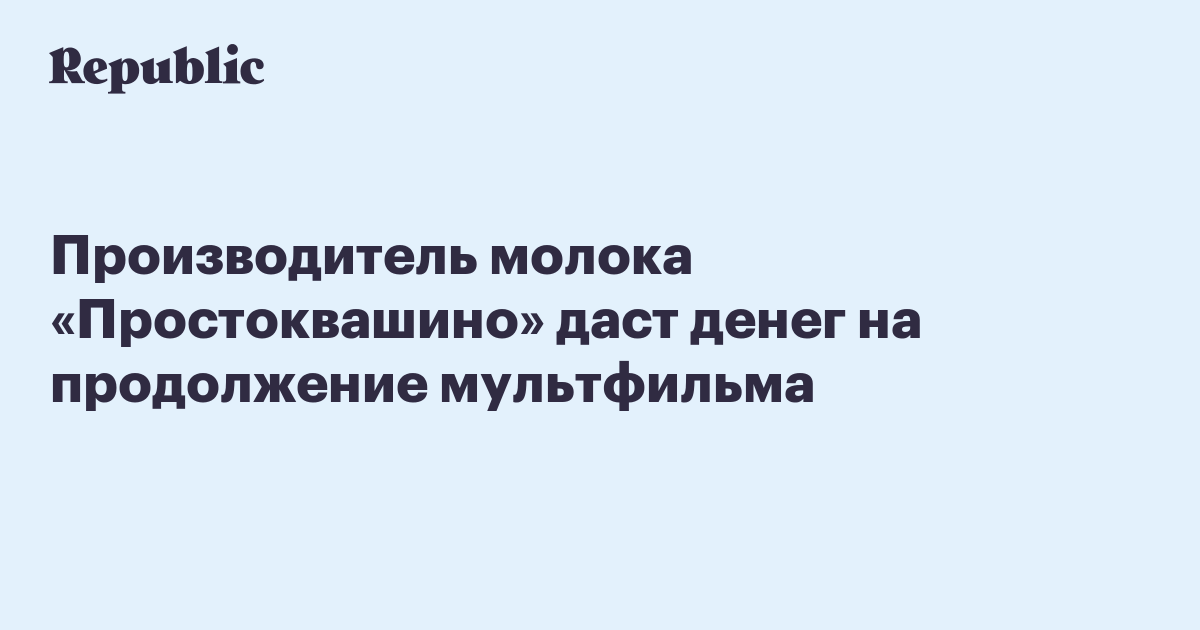 Производитель молока «Простоквашино» даст денег на продолжение мультфильма
