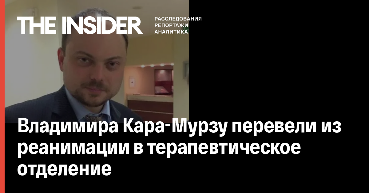 Координатора «Открытой России» Владимира Кара-Мурзу-младшего перевели из реанимации в терапевтическое отделение. Об этом сообщает «Интерфакс» со ссылкой на его адвоката Вадима Прохорова.