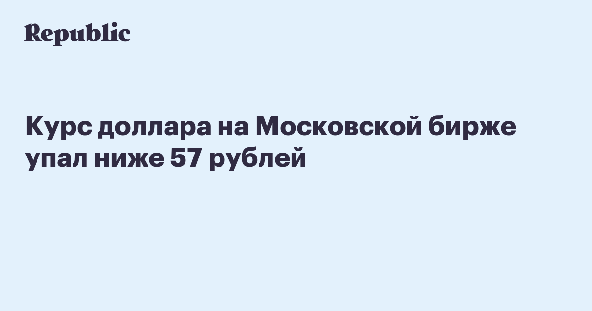 Курс доллара на Московской бирже упал ниже 57 рублей