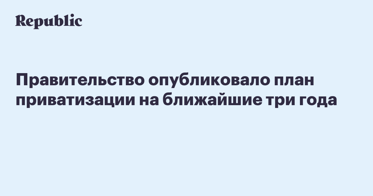 Премьер-министр России Дмитрий Медведев утвердил прогнозный план приватизации на 2017–2019 годы. Документ опубликован на сайте правительства.
