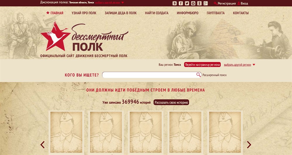 В прошлом году межрегиональное движение «Бессмертный полк» получило президентский грант в размере 1 миллиона рублей. В 2015 году 800 тысяч выделяла Томская область. Эти деньги пошли на развитие сайта.