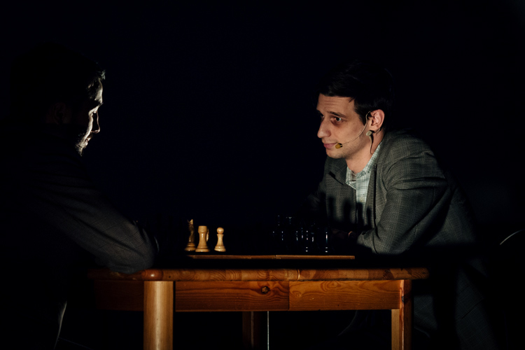 © ТЮЗ им. Брянцева В программке не обозначено, кто Розенкранц, кто Гильденстерн — было бы даже странно. Андрей Слепухин и Иван Стрюк сидят за шахматной доской под низким потолком белого узкого пространства Новой сцены ТЮЗа, обесцвеченными, обнуленными голосами, отмытыми от интонаций, произносят то, что задано, что явно предопределено. Есть эпизод, где они — по Стоппарду — играют в вопросы, на которые разрешено отвечать только вопросами, и эти непрестанные: «Как твое имя? — А твое?»... Когда само понятие роли редуцировано, их можно воспринимать как вопрос «Кто ты сейчас?». Перформер или персонаж? Иван или Розенкранц? Означаемое? Означающее? Каков твой способ присутствия? Где граница?