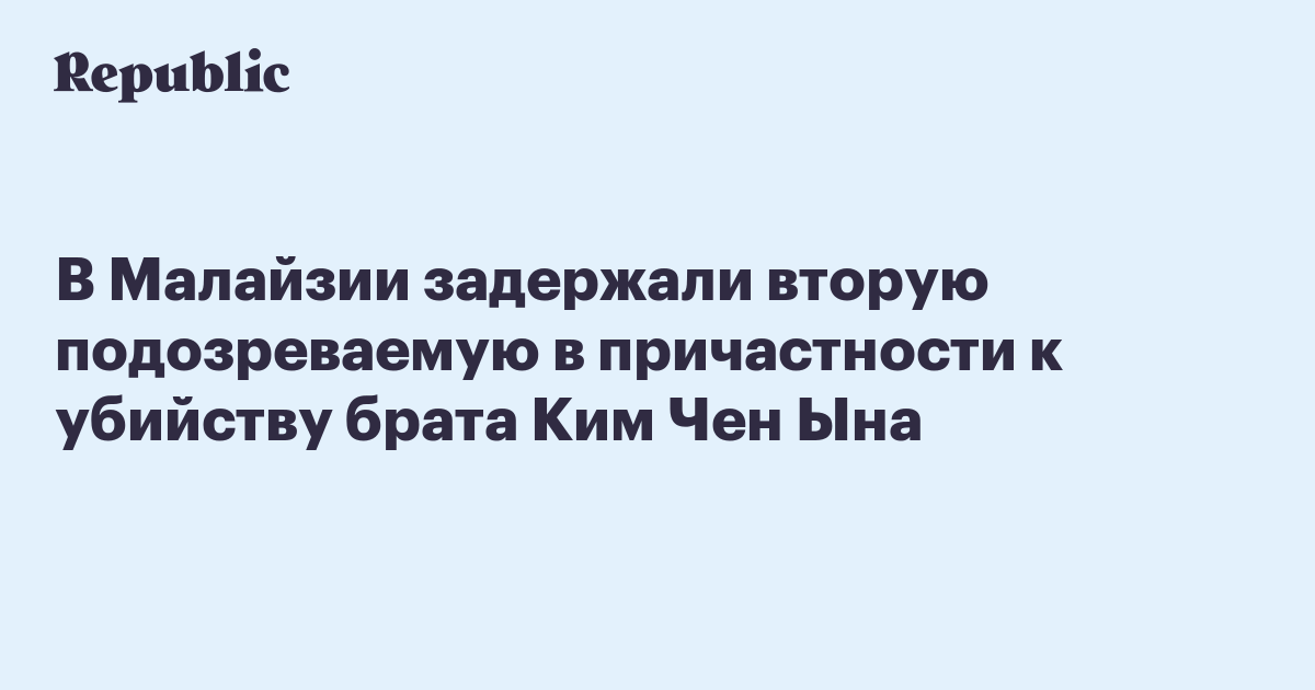 Полиция Малайзии задержала вторую женщину, подозреваемую в убийстве сводного брата главы КНДР Ким Чен Ына – Ким Чен Нама, передает Reuters.