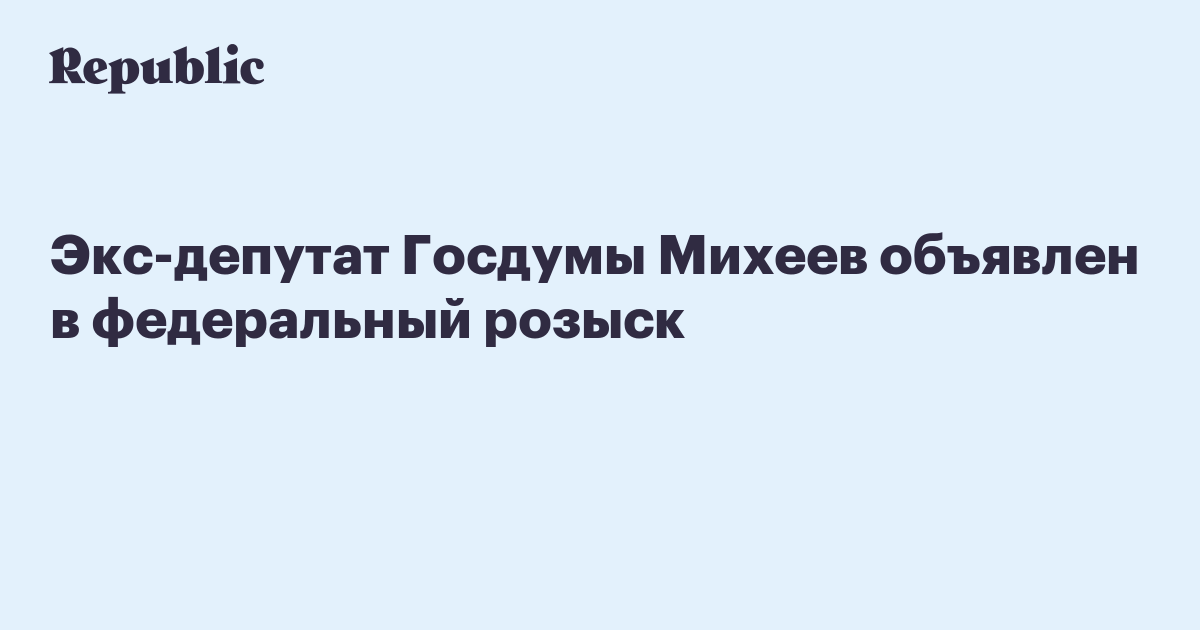 Экс-депутат Госдумы от партии «Справедливая Россия» Олег Михеев объявлен в федеральный розыск, пишет «Коммерсантъ».