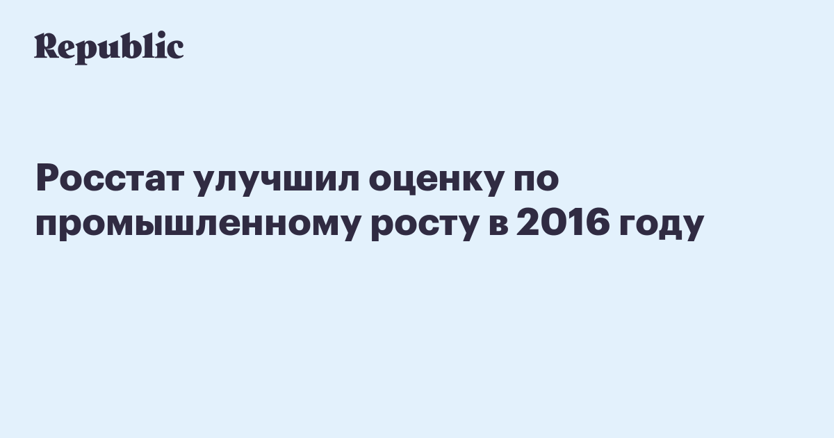 В Минэкономразвития изначально ожидали, что за 2016 год промпроизводство вырастет на 0,4%, но в конце декабря прогноз был улучшен сразу до 1%. Даже без учета нынешней корректировки годовой промышленный рост в России оказался лучше ожидаемого.