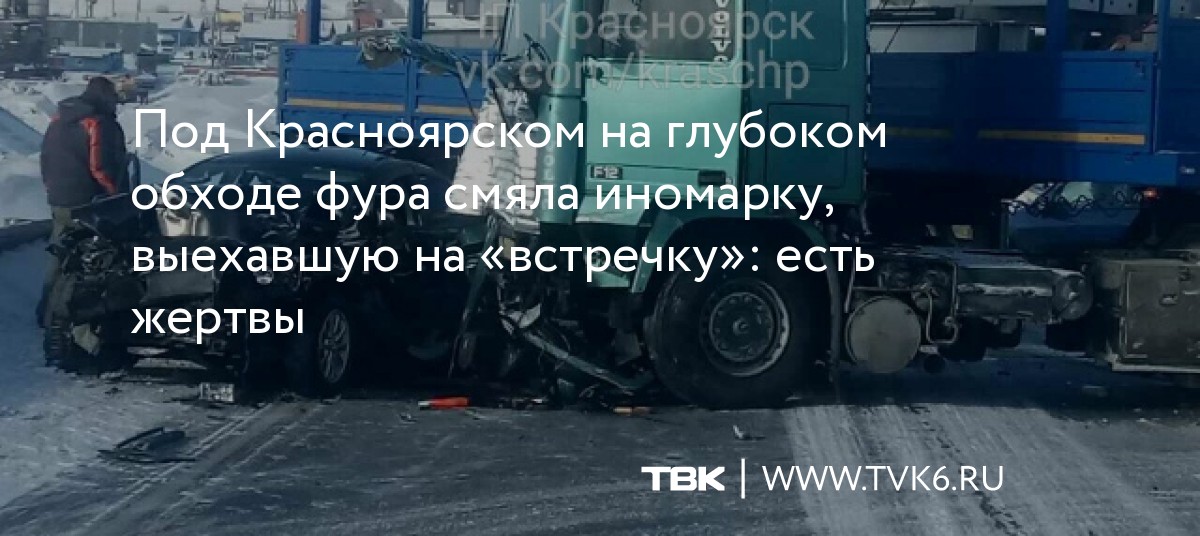 Под Красноярском на глубоком обходе фура смяла иномарку, выехавшую на «встречку»: есть жертвы