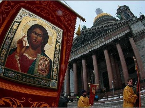Перед шествием в Исаакиевском соборе прошла архиерейская литургия. Ее возглавил архиепископ Петергофский Амвросий. Как сообщили агентства, к участию в мероприятии привлекли молодежные общины приходов Санкт-Петербургской митрополии, учащихся Санкт-Петербургской духовной академии и других вузов города, членов общественных и ветеранских организаций, прихожан петербургских храмов и всех желающих «принять участие в соборной молитве об умножении любви и единении верующих».