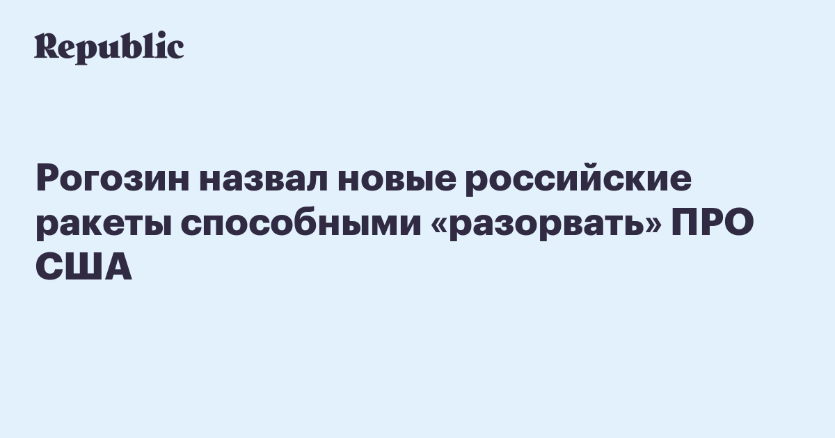 «Это оружие, которое способно преодолеть и сегодняшнюю, и завтрашнюю, и послезавтрашнюю противоракетную оборону США. Мы разорвем эту оборону. Она не представляет для нас на сегодняшний день, кроме провокации, серьезной военной угрозы», – цитирует Рогозина ТАСС.