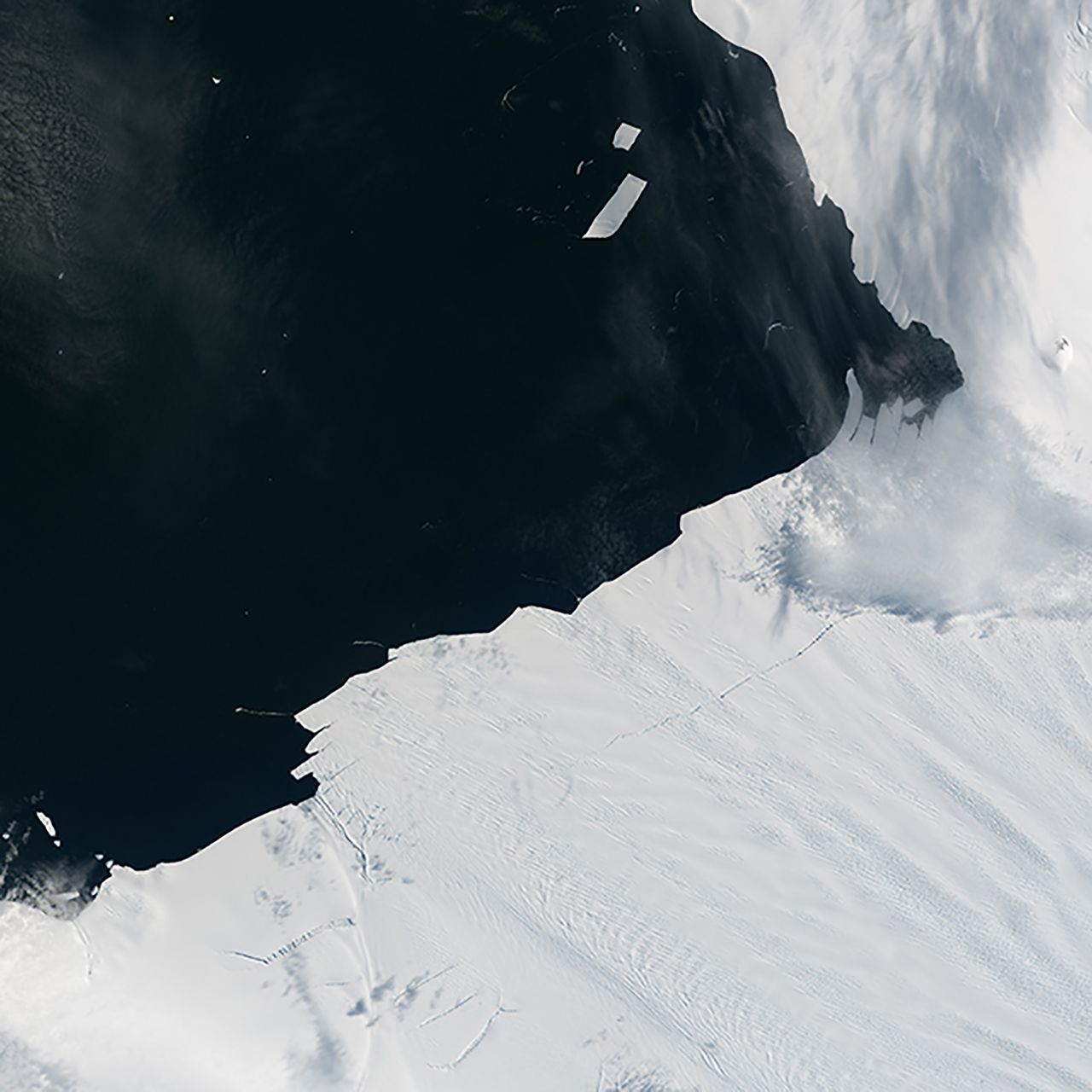 В конце января 2017 года от ледника Пайн-Айленд в Антарктике откололся айсберг шириной порядка километра и длиной около восьми километров. NASA отмечает, что это относительно небольшой айсберг по сравнению с теми, которые откалывались от Пайн-Айленда в 2014-2015 годах — так, в июле 2015-го от ледника отделился кусок примерно в 10 раз больше. Тем не менее, появление айсберга вновь показало, насколько хрупок ледниковый шельф.