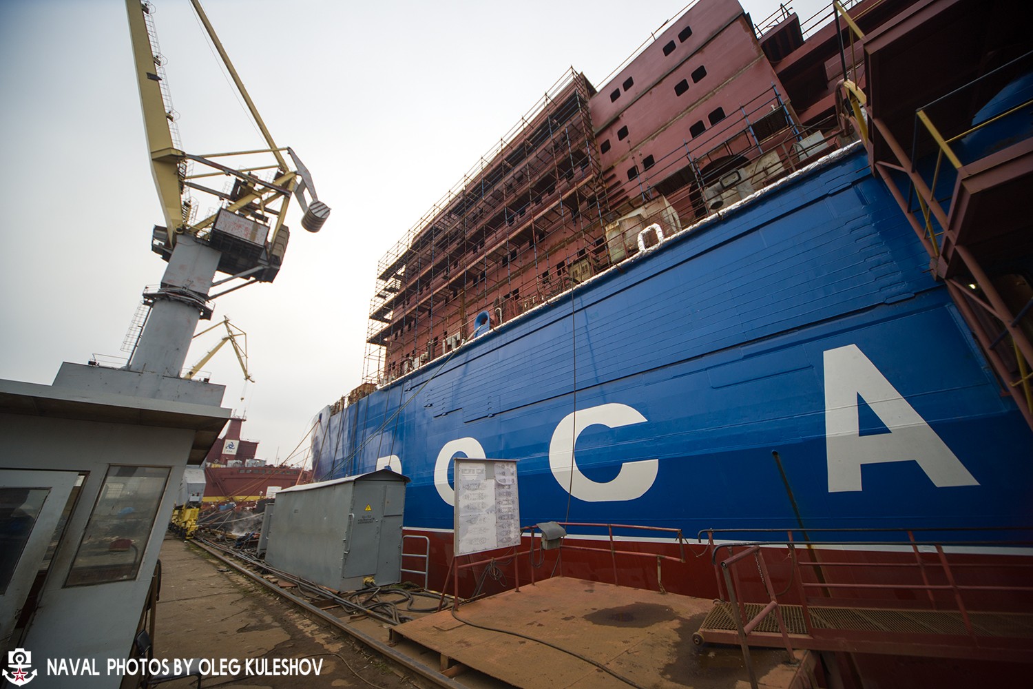 Постепенно формируется корпус ледокола. Спуск производится после достройки корпуса и его покраски. Надстройку устанавливают уже на плаву. В данный момент на стапеле ведётся строительство второго атомного ледокола проекта 22220 - "Сибирь".