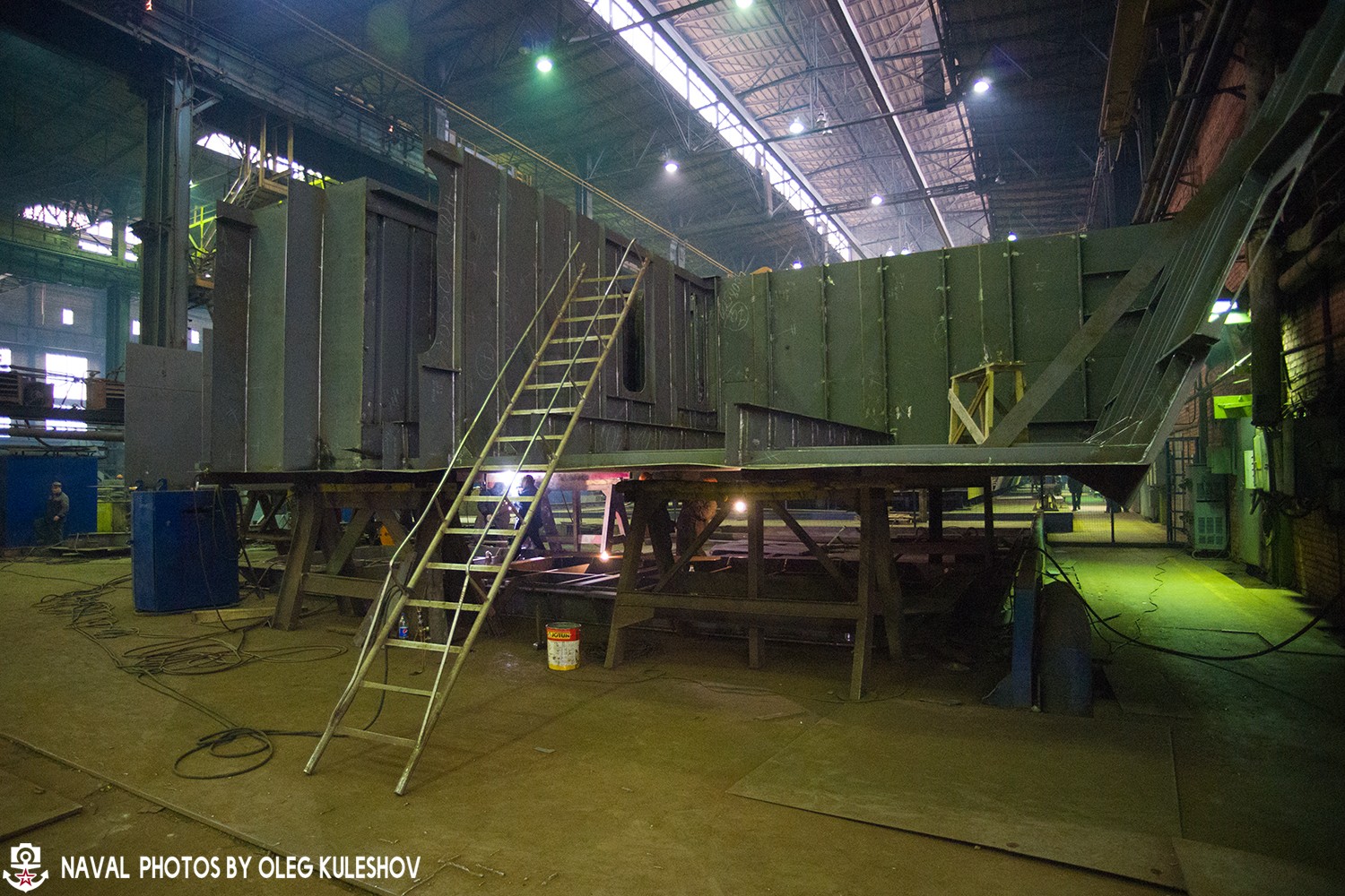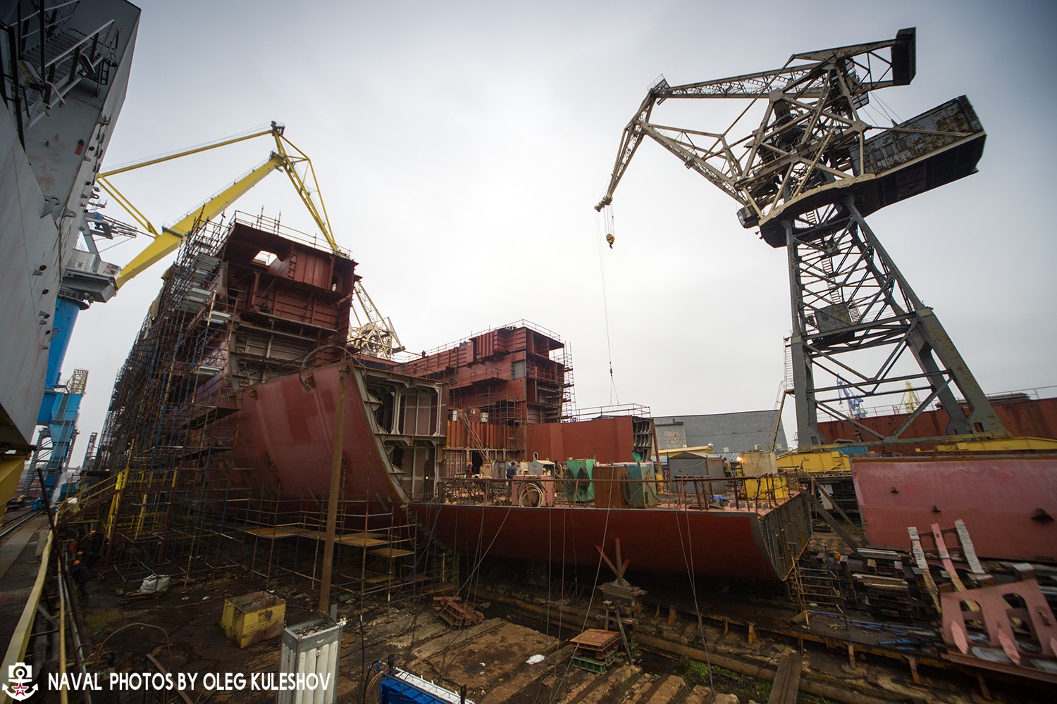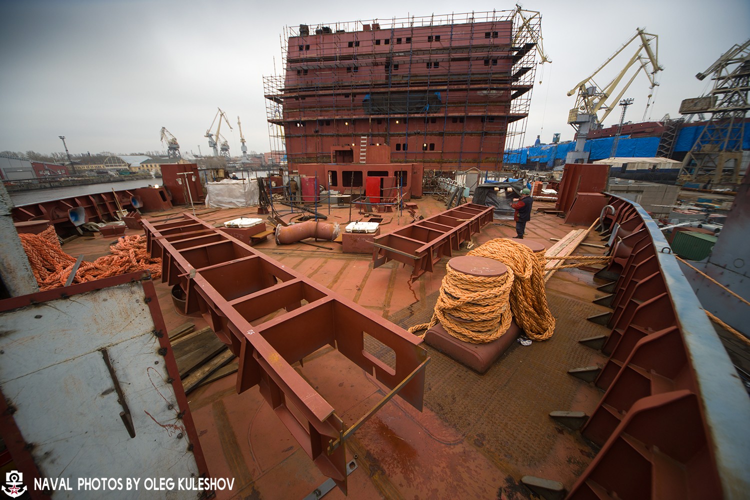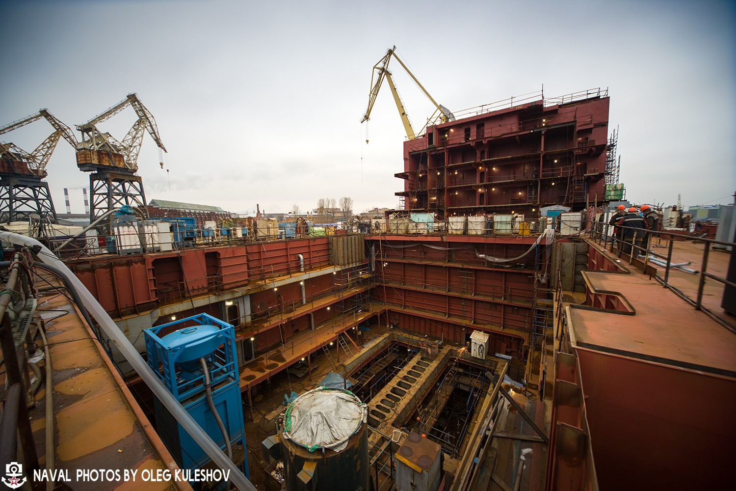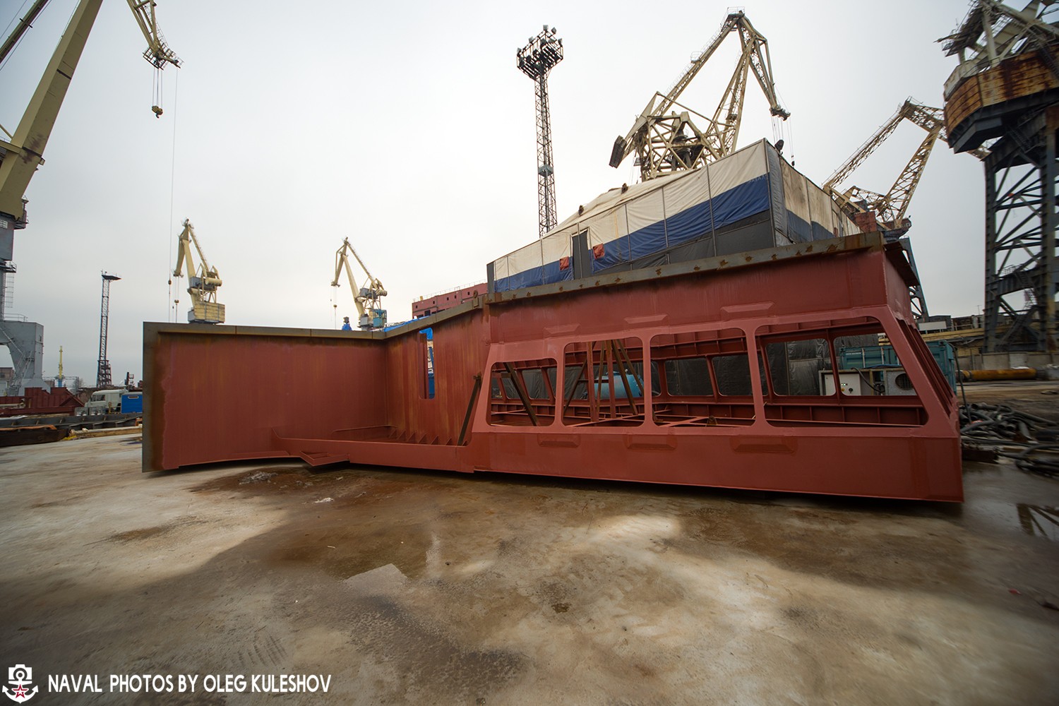 После того, как сборочные единицы корпуса или надстройки изготовят, то её перевозят к стапелю "А", на котором ведутся основные работы по строительству будущего атомного ледокола.
