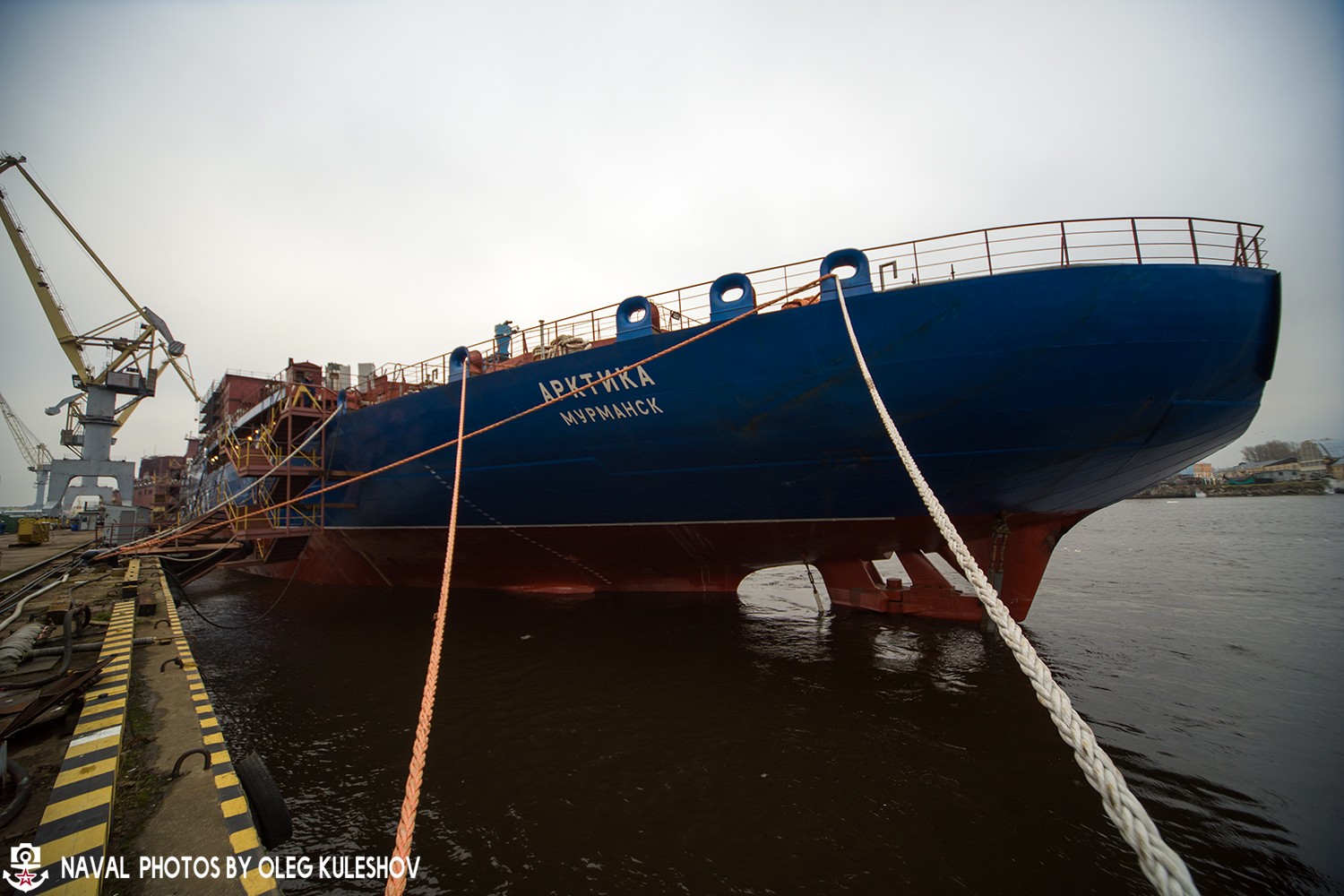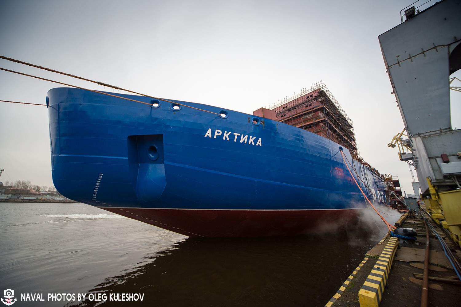 26. Атомный ледокол "Арктика" у достроечной набережной Балтийского завода.