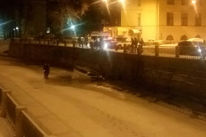 Поздно вечером 20 февраля в Петроградском районе Петербурга машина рухнула в реку Карповку.