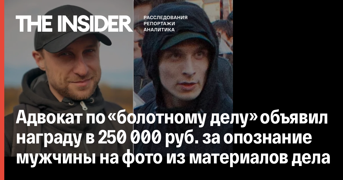 Илья Новиков, адвокат фигуранта «болотного дела» Дмитрия Бученкова, объявил награду в 250 000 рублей за опознание мужчины на фотографии из материалов дела. Новиков утверждает, что на снимке с Болотной площади не его подзащитный.