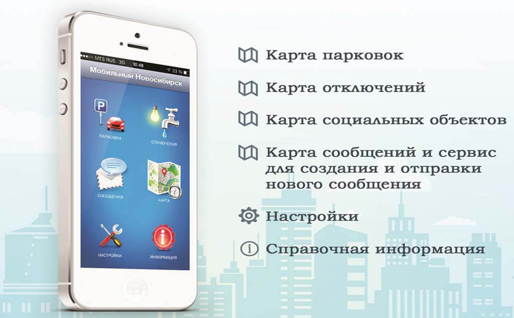 Приложение позволяет жителям города оперативно отправлять сообщения о проблемах, обнаруженных в сфере городского хозяйства, и просматривать на карте города информацию о социальных объектах, отключениях систем жизнеобеспечения и парковках.
