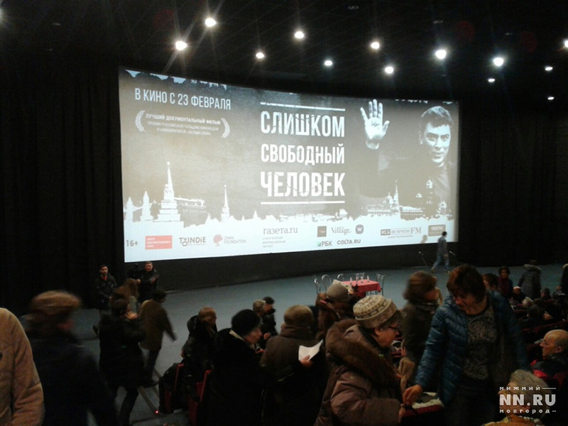 Премьерный показ документального фильма "Борис Немцов. Слишком свободный человек" с аншлагом прошел в Нижнем Новгороде, собрав в кинотеатре "Электрон" более тысячи нижегородцев, сообщает нижегородский сайт НН.ru. Репортаж с премьеры опубликовала телекомпания "Волга".