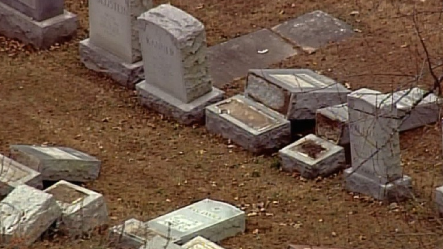 В понедельник вечером на еврейском кладбище в пригороде Сент-Луиса, которому более 100 лет, вандалы повредили 170 надгробий.