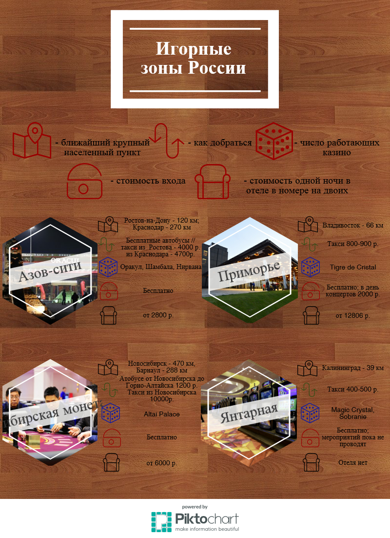 В 2009 году было объявлено о строительстве игорных зон в России. Изначально их было четыре: "Азов-сити", "Приморье", "Сибирская монета", "Янтарная". В июле 2014 года по инициативе президента Владимира Путина решили построить пятую – в Крыму. Планировали создать российские Лас-Вегасы: сеть казино, многочисленные рестораны и отели, парки аттракционов, облагороженная территория. Игорный бизнес должен был предоставить новые рабочие места, развивать туристическую и транспортную инфраструктуру. Но на сегодняшний день на отдаленных от больших городов территориях, измеряющихся сотнями гектаров, стоят лишь одинокие здания казино с отелем и парой ресторанов.