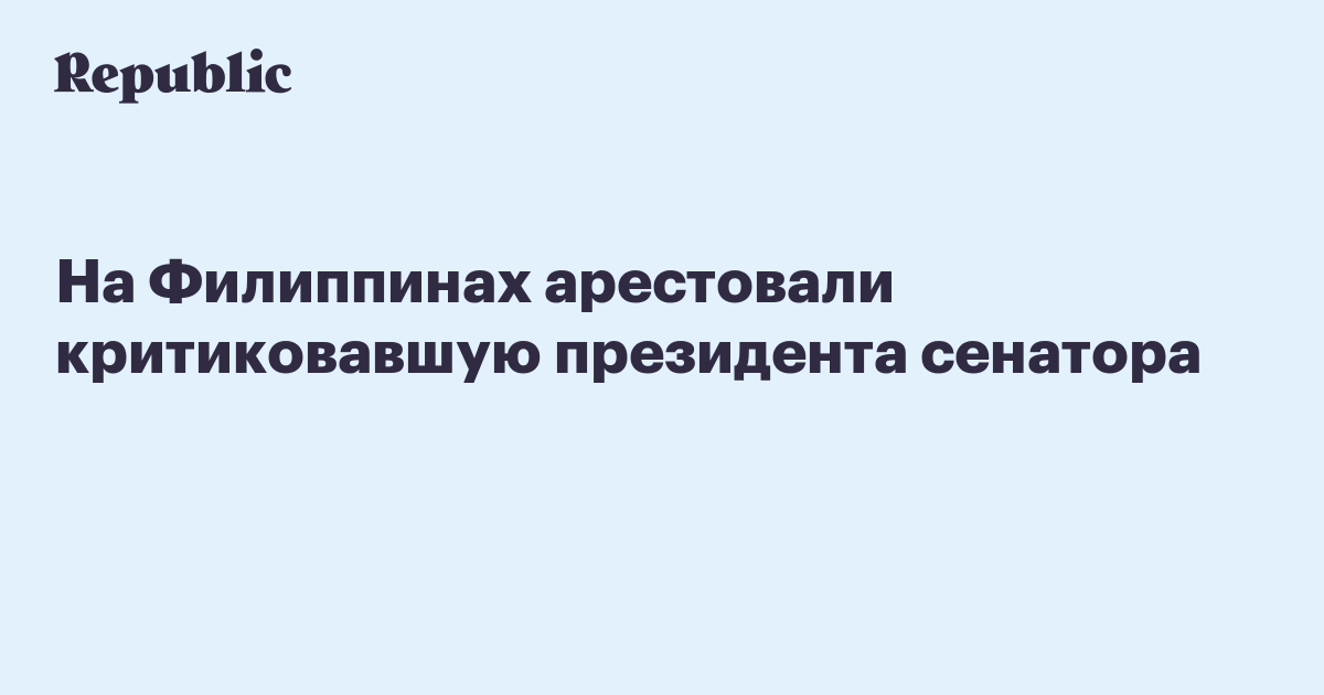 Ранее сенатор призвала правительство Филиппин объявить Дутерте импичмент. Лима назвала «преступлением против человечности» его методы борьбы с наркоманией.