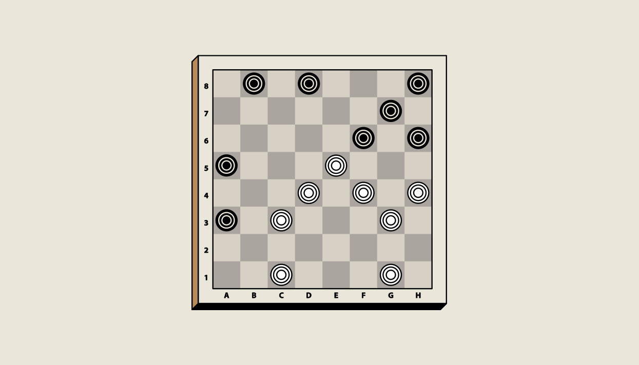 Но вообще там все просто. Сначала у каждого по 12 шашек. Шашки располагаются только на черных полях. Первыми ходят белые. Ходить можно только по диагонали, только вперед и только на одну клетку. Если вам удалось довести шашку до последней горизонтали соперника, она превращается в дамку, способную ходить не на одну клетку, а как угодно далеко (и назад тоже). Если в ход игрока рядом с его шашкой оказывается шашка соперника, а за чужой шашкой — свободное поле, надо бить: то есть поставить свою шашку на свободное поле, а чужую убрать с доски. За один ход иногда получается взять сразу несколько шашек. Побеждает тот, кто уничтожит все шашки противника или добьется, что тот не сможет совершить ни одного хода. Или просто заставит его сдаться.