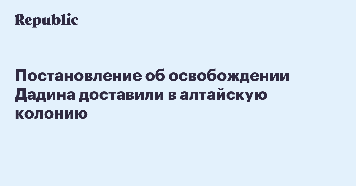 В исправительную колонию №5 в Алтайском крае, где содержится Ильдар Дадин, доставили постановление об освобождении активиста. Об этом 26 февраля сообщает «Новая газета». Телеканал «Дождь» передал, что в колонию приехал автомобиль спецсвязи, но какую именно бумагу он привез, сотрудник ИК не уточнил.