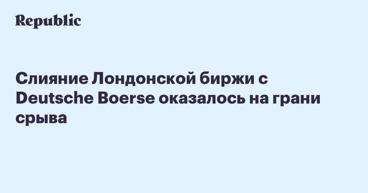 Слияние Лондонской биржи с Deutsche Boerse оказалось на грани срыва