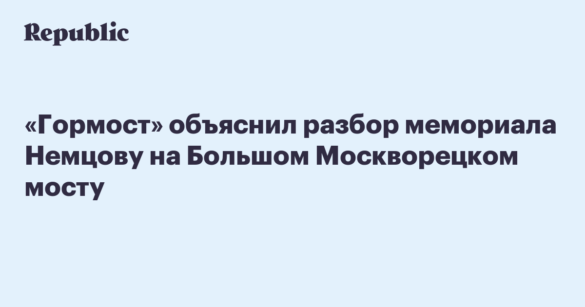 «Гормост» объяснил разбор мемориала Немцову на Большом Москворецком мосту