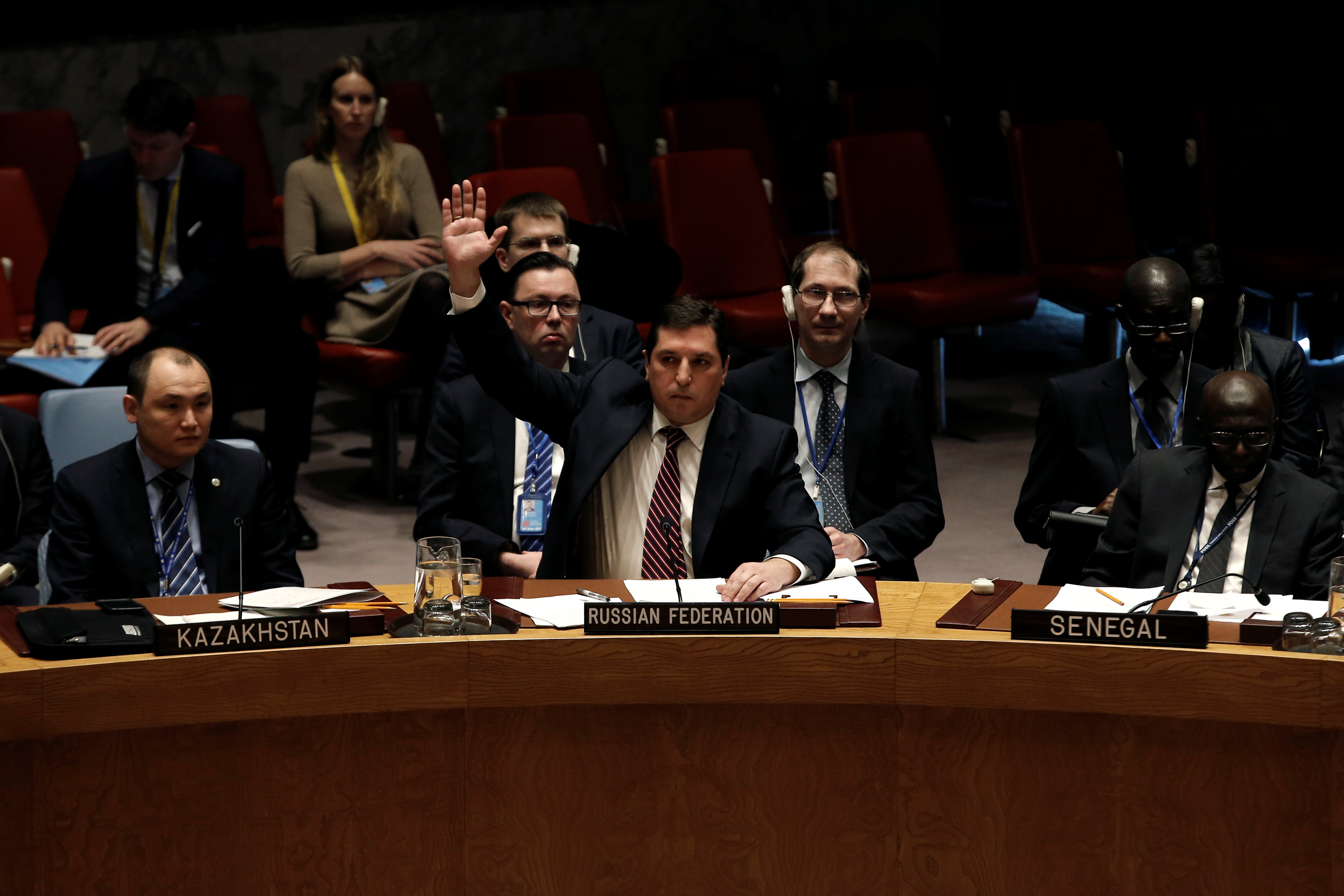 "Проект резолюции не принят, так как против него проголосовал по меньшей мере один из постоянных членов Совбеза", – объявил посол Украины при ООН Владимир Ельченко, председательствующий в Совете Безопасности ООН в феврале.