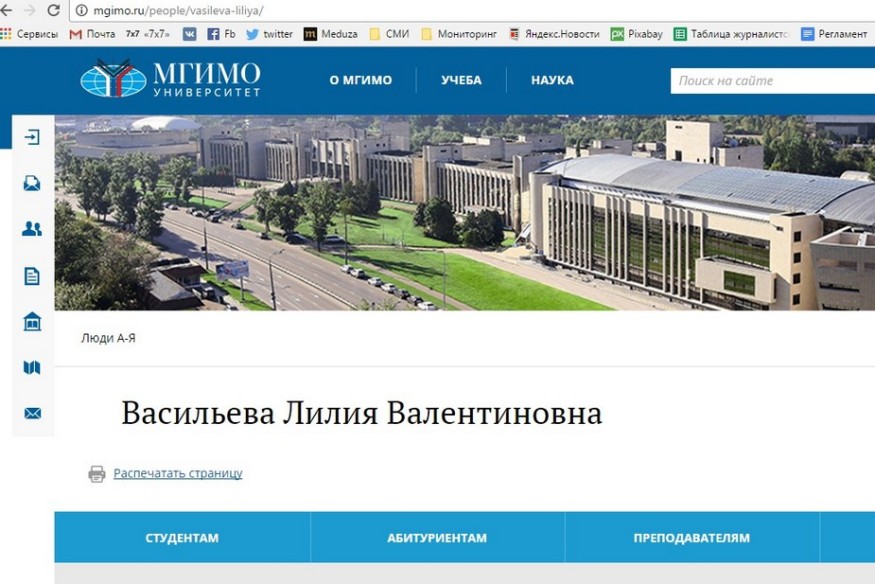 По данным СМИ, Лилия Васильева работала или работает в МГИМО. На сайте вуза в списке сотрудников есть Васильева Лилия Валентиновна, но не уточняется, кем именно и в каком отделе она работает. В пресс-службе и канцелярии института корреспондента «7x7» не смогли связать с Лилией Валентиновной Васильевой.