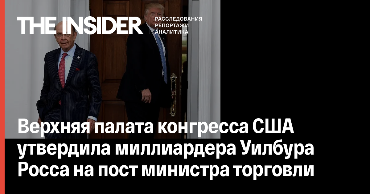 Верхняя палата конгресса США утвердила инвестора-миллиардера Уилбура Росса на пост главы министерства торговли страны. Об этом сообщает Reuters.