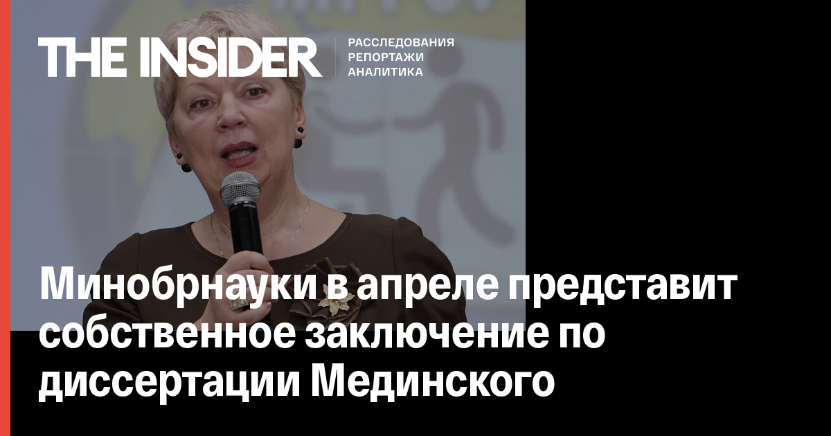 Минобрнауки в апреле опубликует собственное заключение по диссертации министра культуры Владимира Мединского. Как сообщает ТАСС, об этом сообщила министр образования Ольга Васильева.