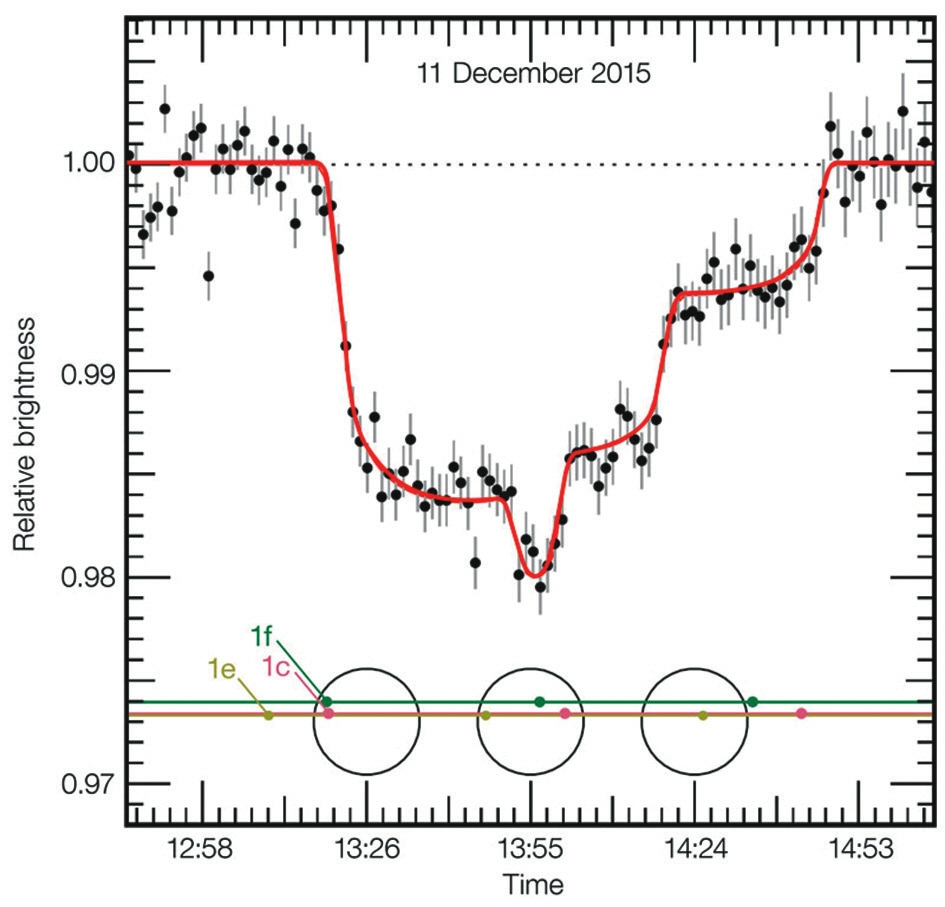 Удалось грубо оценить и массы планет — из-за их взаимодействия транзиты немного смещаются во времени. Ошибки в определении массы велики, но уже можно заключить, что плотность планет соответствует скальной начинке.