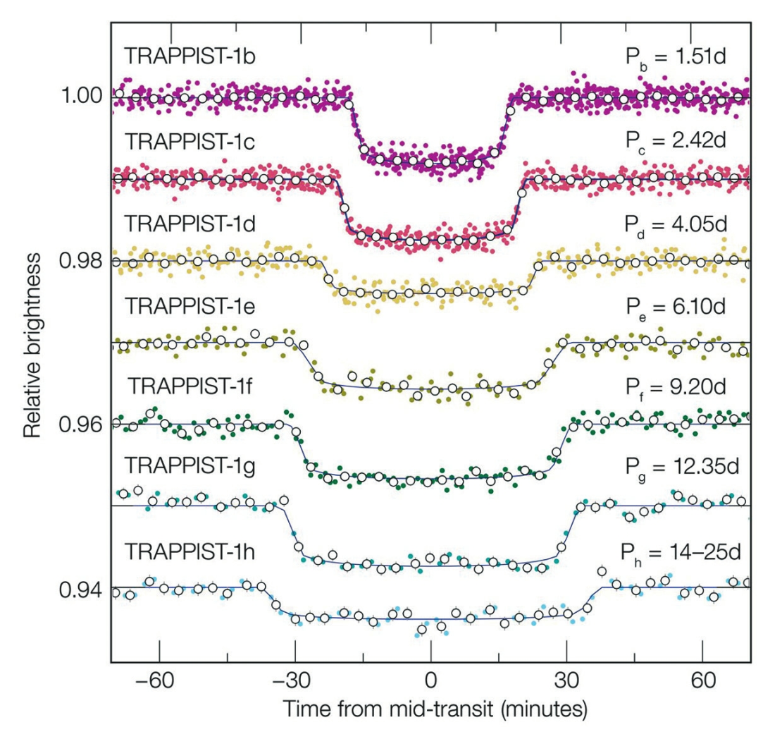 — эти планеты, в отличие от Проксимы b, транзитные, то есть проходят по диску звезды для земного наблюдателя, что резко облегчает наблюдение их атмосфер.