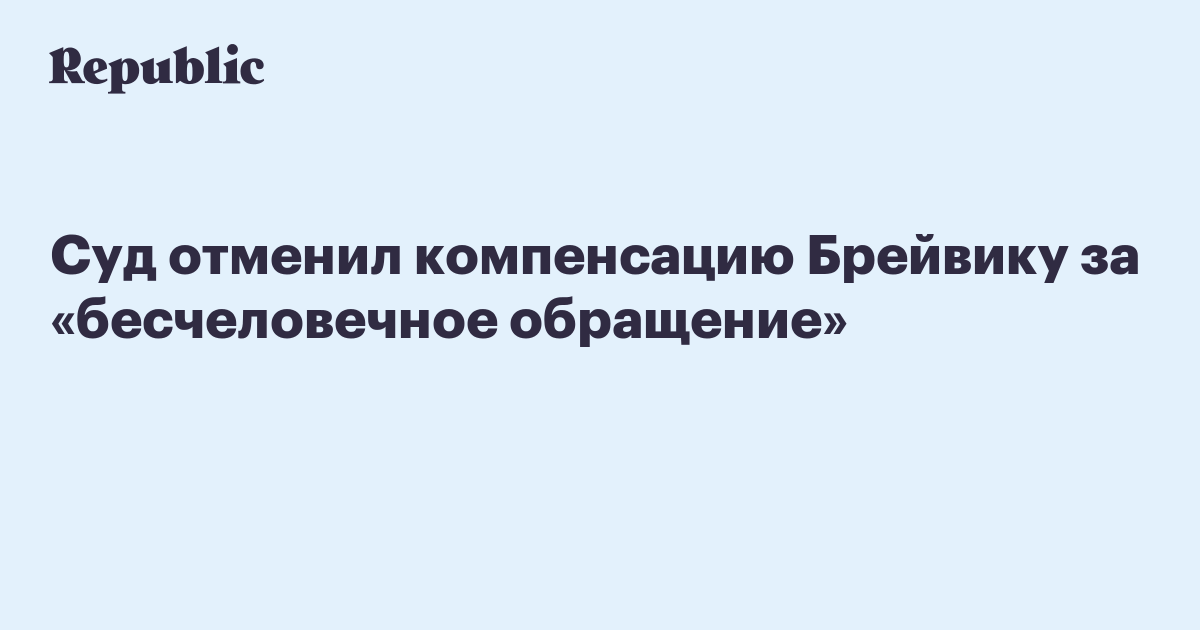 Суд отменил компенсацию Брейвику за «бесчеловечное обращение»