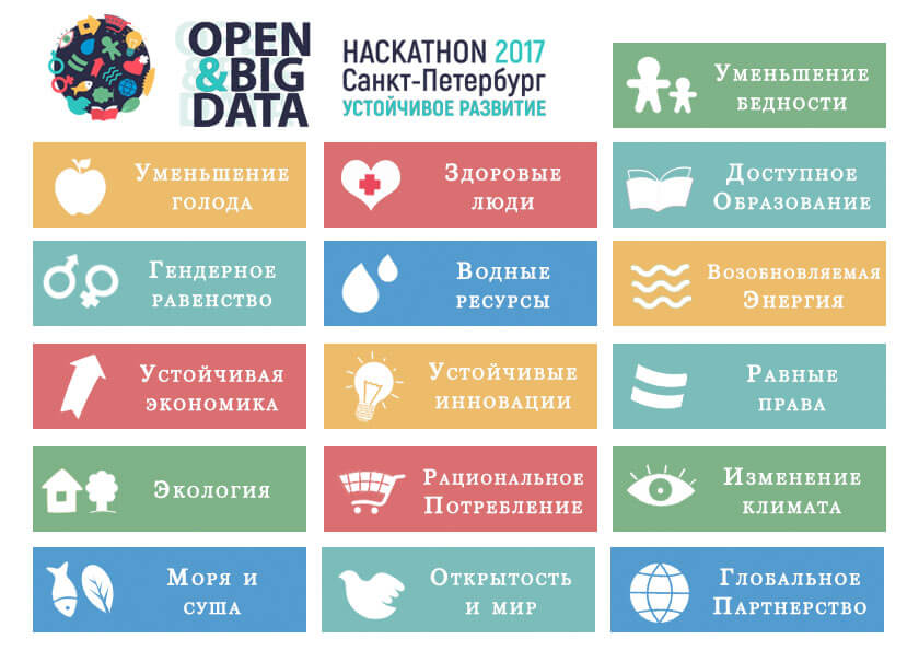 Организаторы поставили перед участниками 17 целей. Они соответствуют вызовам дня и программе ООН «Цели в области устойчивого развития».