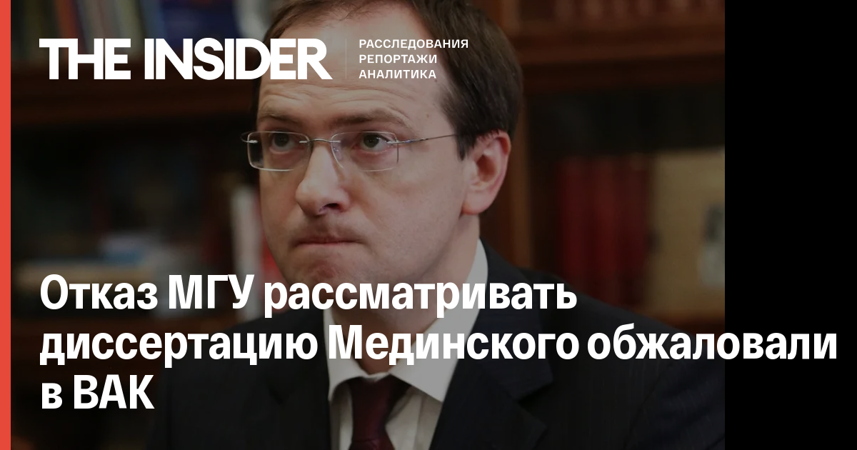 Отказ МГУ рассматривать диссертацию Мединского обжаловали в ВАК