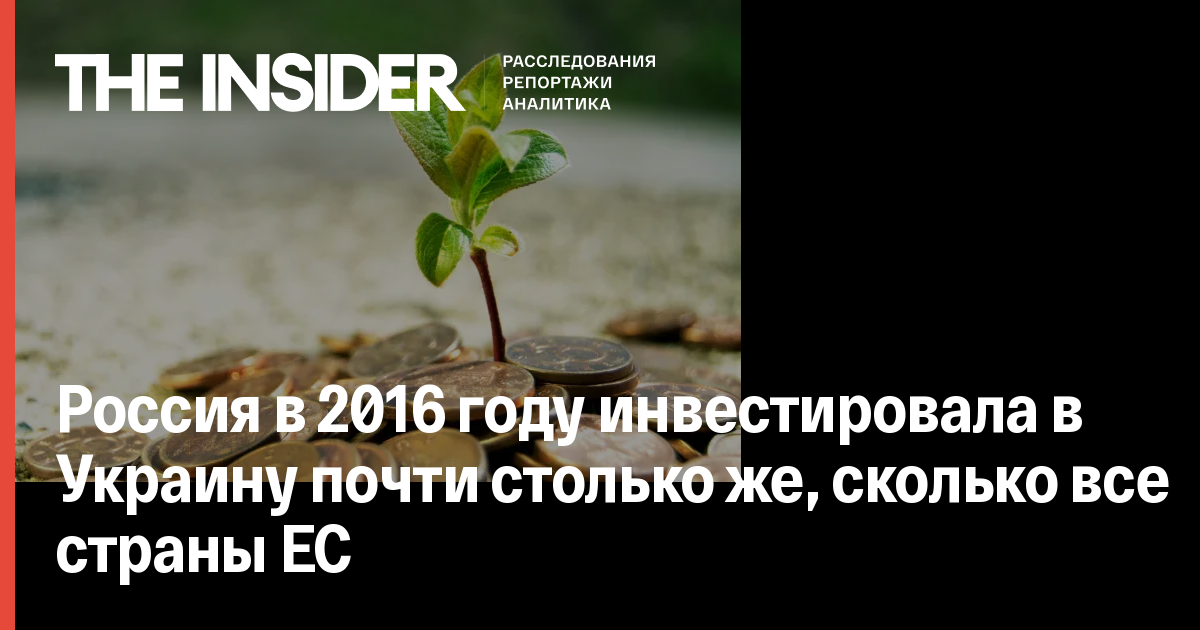 Россия в 2016 году инвестировала в Украину почти столько же, сколько все страны ЕС