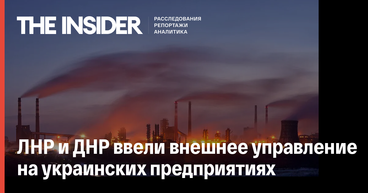 Руководство самопровозглашенных Донецкой и Луганской народных республик (ДНР и ЛНР) объявило о введении внешнего управления на украинских предприятиях, находящихся на подконтрольной им территории. Об этом сообщает «Интерфакс» со ссылкой на источники в руководстве ДНР.