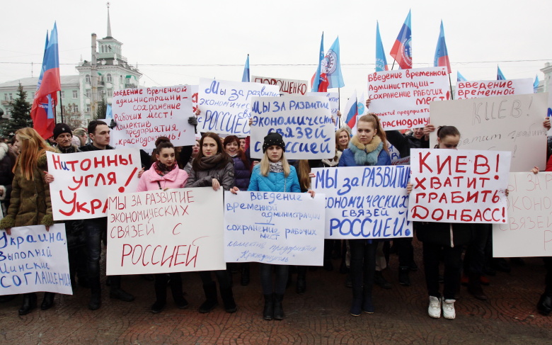 Митинг против железнодорожной блокады Донбасса в Луганске. Фото: Валентин Спринчак / ТАСС