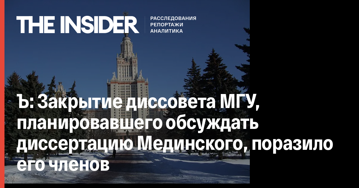 Ъ: Закрытие диссовета МГУ, планировавшего обсуждать диссертацию Мединского, поразило его членов
